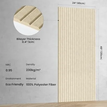 Show more Unveil a new realm of auditory serenity with our 10 Pack Large Acoustic Panels. Measuring 48 x 24 x 0.4 inches, these premium soundproof foam panels are meticulously engineered to enhance your acoustic environment. Crafted from 100% polyester fiber, each panel promises not only impressive sound absorption but also remarkable durability and moisture resistance. Whether you’re tuning in for a music session in your studio, leading a crucial meeting in your office, or simply enjoying a quiet evening at home, these panels are designed to significantly reduce noise pollution and improve sound clarity.