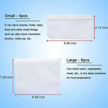 10 Pack Reusable Storage Bags, Silicone and Plastic Airtight Freezer Bags Ziplock (6 Sandwich Bags + 4 Snack Bags) BPA Ziplock Lunch Bag for Food Travel Storage Home Organization