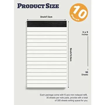 10 Pack Small Note Pads 3x5 Lined Writing Pads Mini Notepads Small Pads of Paper 3x5 With 30 Sheets per Notepad 80Gsm Paper Pads Mini Legal Pads 3x5 Inch Pocket Notebook for Taking Notes and Reminders