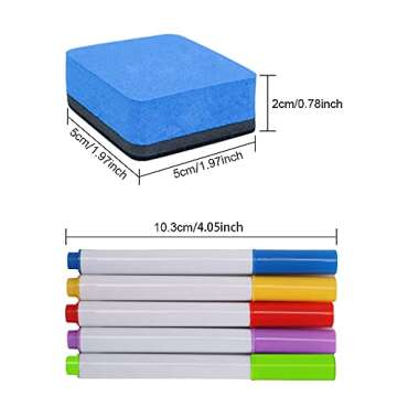 10 Pcs Dry Erase Dots Circles for Classroom Table, 20 PCS Magnetic Dry Erasers & 10PCS Dry Erase Markers, Removable Vinyl Dots Stickers Wall Decal for Drills and Training Home, Office, School Teaching