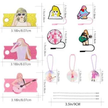 10 Pcs Stanley Cup Accessories Set, 4 Pcs Stanley Straw Covers(9-12mm)+3 Pcs Stanley Name Plate Lids for 40 oz +3 Pcs Stanley Charms for Handle Stanley Popular Singer Tumbler Decorations (Singer)