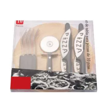 Host pizza night with confidence: this 10‑piece pizza serving kit pairs a knife‑friendly rubberwood board with a full stainless cutlery suite, streamlining every slice from oven to plate. Rubberwood resists warping and offers a stable cutting surface, a trait valued over softer woods for daily prep. The 250 × 10 mm board’s compact profile fits standard 12‑inch pies while doubling as a rustic serving platter.