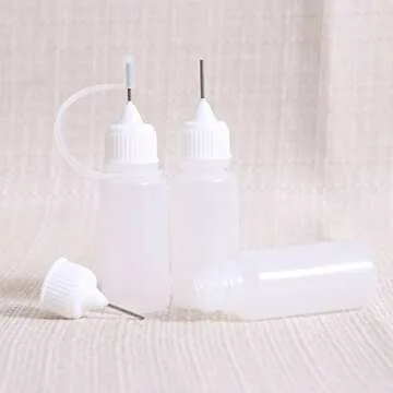 Show more Discover the ultimate tool for precision crafting with our 10 Pieces Precision Tip Applicator Bottle set. Each bottle is expertly assembled by hand to guarantee the highest quality and performance that crafters deserve. The flexible design allows for easy squeezing, making it an ideal instrument for dispensing thin liquids and glue with utmost accuracy. Whether you're into paper quilling, DIY crafts, or various artistic projects, these needle tip squeeze bottles will enhance your creative process.