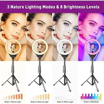 10" Ring Light with Tripod Stand and Phone Holder RGB Selfie Ring Light with 59" Stand & Desk Phone Tripod Stand,8 Dimming Levels,17 Color LED Ring Lights for Phone,Live Stream,Make Up,YouTube,TikTok