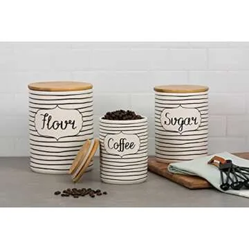 10 Strawberry Street Coffee, Sugar, Flour Kitchen Canister, 3 Piece Set, Everyday Black/White