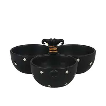 Show moreTransform your Halloween celebrations into unforgettable experiences with the spectacular Heritage Halloween 3-Section Bowl by 10 Strawberry Street. This striking bowl, finished in a captivating matte black, effortlessly blends functionality with eerie elegance, making it a stunning centerpiece for all your festive gatherings. Each of the three spacious sections measures an impressive 4.25 inches wide and 2.25 inches high, allowing you to creatively display a variety of delicious snacks, candies, and ghoulish treats. Constructed from high-quality stoneware, it is designed to endure the excitement and spills that come with Halloween festivities while maintaining its chic appearance and durability.