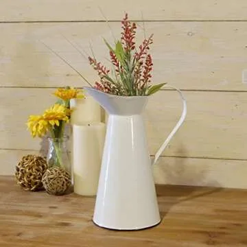 10" Tall Vintage Inspired White Metal Enamel Pitcher - A Perfect Decor Addition