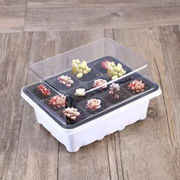 10 Trays with Dome 12 Cells for Gardening Bonsai Plant Grow Starting Germination Kit (White)