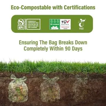 Show more Nurture a greener future with our Compostable Trash Bags. Designed for eco-conscious individuals, these bags are BPI and OK Compost certified, fulfilling the US ASTM D6400 and EU EN 13432 standards. What this means is that they are crafted to biodegrade naturally, ensuring that you’re minimizing your carbon footprint while managing waste.