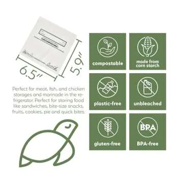 Show more Introducing the **100% Compostable Food Storage Bags** by Earth's Natural Alternative—a revolutionary eco-friendly solution that elevates your food preservation while protecting the planet. Each pack contains **150 resealable bags**, perfectly sized at **6.5x5.9 inches (16.5x15.0cm)**, making them ideal for snacks, sandwiches, and an array of food items. Crafted with the environment in mind, these bags are made from **100% compostable materials** derived from sustainable vegetable starch, ensuring they are as **good for your pantry** as they are for Mother Earth. With no polyethylene or harmful chemicals, these heavy-duty bags offer unparalleled durability while being **BPA-free**, **non-toxic**, and **unbleached**—a truly guilt-free choice for conscientious consumers with a passion for sustainability.