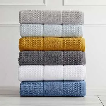 100% Cotton Super Soft Luxury Towel Set | Quick-Dry and Highly Absorbent | Waffle Textured | 550 GSM | 2 Bath Towels, 2 Hand Towels, & 2 Washcloths | Harper Collection (Mustard Yellow)