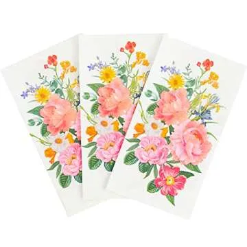 When it comes to disposable napkins, our **100 Floral Guest Napkins** truly stand out. Unlike generic paper napkins, ours are thoughtfully designed with vibrant floral motifs that make them a centerpiece of your table settings. Competitors may offer cheaper options, but at the expense of quality and aesthetics. Our 3-ply construction provides unmatched durability and a soft touch that will not let you down during special moments. The extra attention to design choice makes our napkins a favored option among discerning hosts.