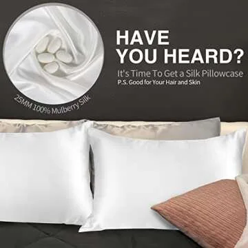 100% Mulberry Silk Pillowcase for Hair and Skin, 25Momme Soft&Smooth, Both Sides Premium Grade 6A Silk Pillow Cover for Women Mom Men (White| 25mm, Standard 20''×26'')