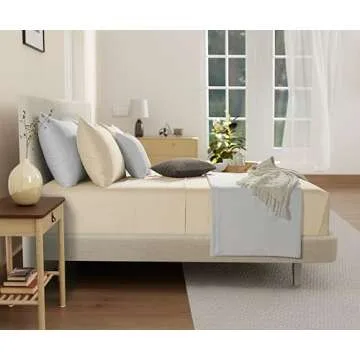 100% Organic Cotton Queen Sheets, 300 TC 4 Piece Cotton Sheets Queen Size Set, Classic Sateen Weave Bedsheets Queen Size Bed, Soft Breathable Sheet & Pillowcase Sets, Deep Pocket 16" - Ivory
