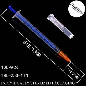 Show more Introducing the 100 Pack 1ml/cc Plastic Luer Slip Syringa, your essential companion for precision liquid measurement and application in scientific, industrial, and hobby settings. Each syringa comes equipped with a nifty 25-gauge needle that enhances its versatility, making it ideal for a myriad of tasks such as refilling cartridges or precise glue application. Made with high-quality plastic, these syringas feature a thick barrel and clear, well-printed measuring marks that ensure accuracy at every usage. With a capacity of 1ml and minimum tick marks at 0.2ml, they are perfect for projects where attention to detail is paramount.