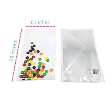 Show more Welcome to the world of creativity and convenience with our transparent cellophane bags! These 10in x 6in versatile bags are more than just packaging; they are a canvas for your imagination and perfect for enhancing any occasion. Whether you're hosting a party, preparing for a special event, or wanting to share delightful treats, these bags are your ideal companion. Made from high-quality OPP material, they guarantee food safety and ensure that your cookies, candies, and snacks remain fresh and appetizing. With a transparent design, you can proudly showcase your goodies, making them not only visible but also more enticing!