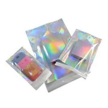 100 Pcs Clear Front Poly Mailers Holographic Metallic Aluminum Foil Glitter Bag Shipping Envelopes Mailing Self Sealing Envelope Packaging Pouches Mylar Bags Storage Bags 4.5×6.5in (11.5×16.5cm)