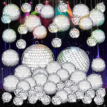 Show moreEnhance your festive occasions with our 100 Pcs Mirror Disco Balls Decorations, featuring a dazzling assortment of disco balls in various sizes that are ideal for adding a burst of creativity and joy to any event. Each set contains a total of 100 disco balls—45 pieces measuring 3 cm (1.18 inches), 40 pieces at 5 cm (1.97 inches), 13 pieces of 8 cm (3.15 inches), and 2 large ones at 15 cm (5.91 inches). Crafted from quality foam and covered with shimmering silver glass, these disco balls are both lightweight and durable. They're perfect for decorating your Christmas tree, adding flair to parties, or uplifting the ambiance of any decor.