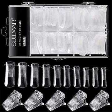 100 Pcs Poly Extension Gel Dual Nail Forms, Poly Nail Gel Forms Gel Clear Nail Mold Acrylic False Nails Manicure Tool with 10 Pcs Clear Nail Tips Clips for Gel Manicure Nail Art Design