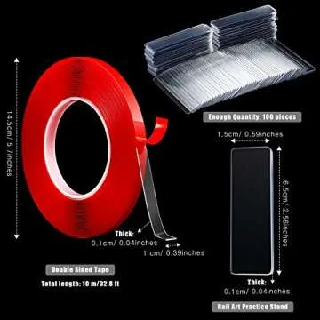 100 Pieces Nail Design Tips Display Stand Holder with 10 M Double Sided Tape Nail Design Practice Holder and Removable Mounting Tape for Home Wall office Decor