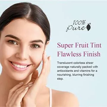 Show more Unveil the secret to flawless skin with our SUPER FRUIT TINT FLAWLESS FINISH! This revolutionary product, crafted by 100% Pure, brings you translucent colorless sheer coverage that not only enhances your look but also nourishes your skin. The unique formulation is packed with antioxidants and vitamins, providing a blurring finishing touch that's perfect for those who appreciate beauty with a conscience.