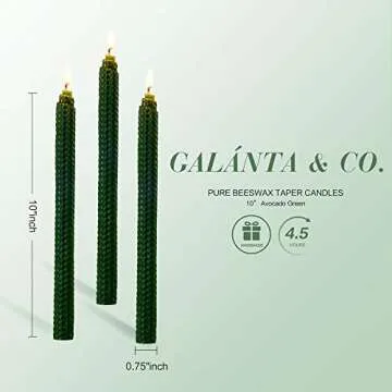 100% Pure Beeswax Handmade Taper Candles (Avocado Green) - 8 Inch Smokeless Dripless Pair - Natural Subtle Honey Smell - Elegant Honeycomb Design - by Galanta & Co.