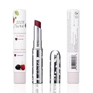 Show more Introducing the luxurious 100% Pure Lip Glaze, a revolutionary lip product that combines beauty with wellness. Uniquely crafted using real Cabernet Grapes, Cherries, and Raspberries, this lip glaze boasts a bold, dark cherry hue, reminiscent of a fine glass of red wine under the candlelight. Not only does it deliver rich color, but its smooth and creamy texture ensures a comfortable wear that keeps your lips perfectly hydrated.