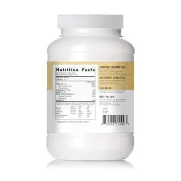 Show moreDiscover the amazing benefits of using tallow with our premium-quality product, sourced directly from local US farms. This exceptional cooking fat is a remarkable alternative to modern plant oils, having been revered for its versatility throughout history. Rich in healthy fats and deep-rooted in traditional culinary practices, this tallow is perfect for various cooking methods, including frying, baking, and sautéing.