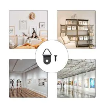 100 Small Triangle Ring Steel Picture Hangers, Rings, Hangers with 100 Screws (Black)