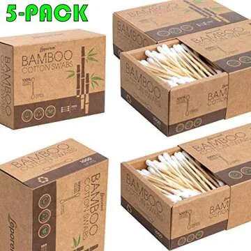 1000 Count Cotton Swabs - Cotton Buds, Organic Cotton Swab, Multipurpose Highly Absorbent Hygienic, Recyclable & Biodegradable Bamboo Cotton Sticks for Beauty Care, Painting, Jewelry, Pet Care(5 Pack)