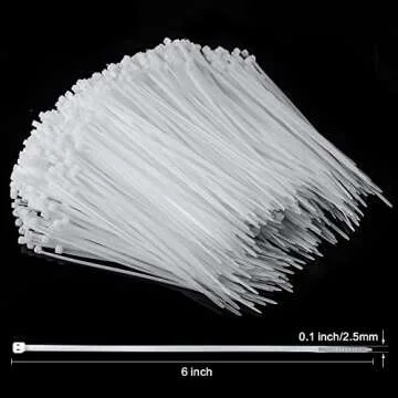 Show moreIntroducing our premium quality 1000 Pcs White Zip Ties, expertly crafted from industrial strength 6/6 nylon, these 6-inch clear self-locking cable ties are designed for unparalleled durability and reliability across a variety of applications. With a max tensile strength of 18 lbs (8 kg), they are the perfect companions for all your fastening needs, ensuring that your projects stay securely in place. Whether you are a PC builder, working on DIY crafts, or managing garden tools, our zip ties provide a steadfast solution that makes organizing and securing a breeze.