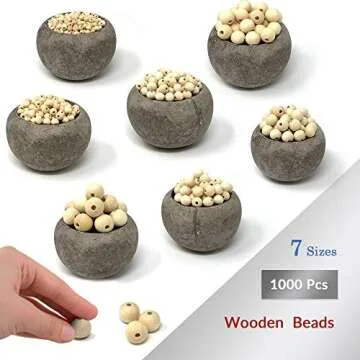 1000pcs Natural Wooden Beads, Round Wood Beads Unfinished Wooden Decorative Beads Loose Spacer Beads for Crafts Making 7 Sizes (20mm, 16mm, 14mm, 12mm,10mm, 8mm, 6mm)