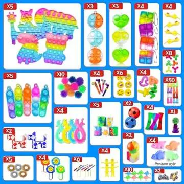 Show more Discover the ultimate sensory stimulation experience with our Sensory Toys Pack, featuring an impressive assortment of 60 unique toy types designed to captivate children’s imaginations. This thoughtfully curated collection encourages creativity and enhances cognitive skills by keeping young minds engaged. Whether it's during school breaks or playtime at home, these toys are the perfect way to keep kids entertained and focused. The pack includes vibrant fidget gadgets suitable for all ages, ensuring both children and adults can enjoy safely.