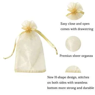 Show more Introducing the exquisite 100pcs 5x7 inch Gifts Wrap Bags, the perfect blend of elegance and functionality for all your gifting needs. Crafted from transparent organza with a charming golden finish, these bags are designed to showcase your thoughtful gifts while offering a touch of sophistication. Measuring 5x7 inches, these pouches are spacious enough for a variety of small items such as jewelry, candies, and unique handmade crafts. The drawstring closure not only adds convenience but also enhances the aesthetic appeal, making it a delightful option for any occasion.