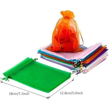 Show moreElevate your gift-giving experience with our **100pcs 5x7 Inches 10 Color Organza Gift Bags with Drawstring**. Designed with versatility and elegance in mind, these exquisite organza bags are perfect for a variety of occasions, offering a delicate touch with seven vibrant colors that will make your gifts stand out. Made from high-quality sheer organza fabric, each bag is approximately 13 x 18 cm (5 x 7 inches) – the ideal size for holding small items like jewelry, party favors, or treats. The generous pack of 100 allows you to cater to all your gifting needs and special events, whether intimate or grand.