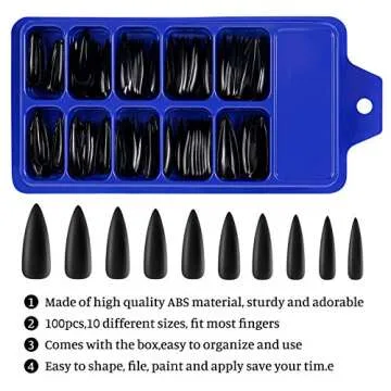 100pcs Black Long Stiletto Fake Nail Tips Full Cover Pure Color Artificial False Nails with 5pcs Nail Glues Acrylic Nail Art DIY Design (Black, Stiletto)