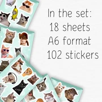 Show moreUnleash the laughter and creativity with our 100Pcs Cat Meme Stickers, the ultimate collection of funny cat stickers designed to brighten anyone's day! Perfect for personalizing any item, these vinyl decals are not just visually appealing but also practical. Each sticker adheres securely to a variety of surfaces, making them ideal for water bottles, laptops, phone cases, journals, and even skateboards. Made with durable, professional-grade vinyl, you can trust these stickers to remain vibrant and intact through everyday use while being easy to apply and remove.