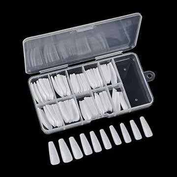 100Pcs Fake Nails Ballerina False Nail Tips UV Gel Acrylic Full Cover Coffin Fake Nail Manicure Beauty Tools(White-100PCS-1Box)