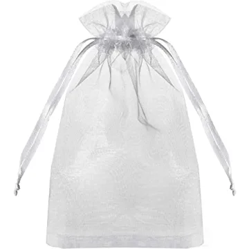 Show more Imagine a beautifully curated selection of gifts packaged in exquisite bags that elevate the presentation of your items. Our premium white organza drawstring bags are perfect for every event and occasion, designed to make gifting an unforgettable experience. Crafted from high-quality sheer organza material, these bags offer a blend of elegance and functionality. Measuring approximately 10 x 15 cm (4 x 6 inches), with a package containing 100 pieces, they are ideal for weddings, parties, birthdays, and more.