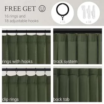 102 Inch Long Curtains Pinch Pleat Linen Curtains for Living Room 2 Panels Set Olive Green Semi Sheer Light Filtering Boho Neutral 102 Inch Pleated Curtain with Hooks Floor Ceiling Bedroom Window