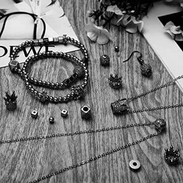 1034 Pieces King Crown Charm Rhinestone Bead Round Ball Zircon Bead Hexagon Big Hole Spacer Diamond Cutting Cube for DIY Chain Bracelet Jewelry Making(Black)