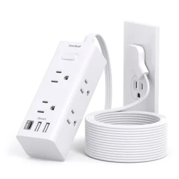 The One Beat Ultra Flat Plug Power Strip with a 10 ft Flat Extension Cord is your ultimate solution for simplifying your power needs while optimizing space. At just 0.35 inches thick, the ultra-flat plug allows for versatility in placement, easily fitting behind furniture, beds, or refrigerators without being intrusive. The innovative 45-degree right-angle design means you can make the most of your outlet and eliminate unnecessary clutter in your living space. Constructed from high-quality pure copper, the...