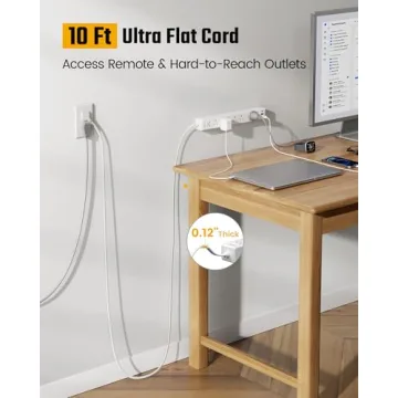 This innovative power strip not only boasts a thoughtful design but also prioritizes safety. Equipped with a robust **8-point safety protection system**, it includes **1050 Joules surge protection**, **overload protection**, and **fire-retardant casing** to safeguard your valuable electronics. Whether it’s your laptop, monitor, or phone, rest assured they are in safe hands while charging. Its **45° angled plug** and spacious outlet arrangement mean you can comfortably connect bulky plugs without blocking others, a common issue with standard power strips.
