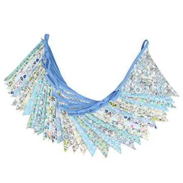 10M/32Ft Triangle Bunting Banner, 36 Pcs Cotton Fabric Flags Pennant Garlands for Birthday Party, Wedding, Baby Shower, Outdoor and Home Decorations (Blue)