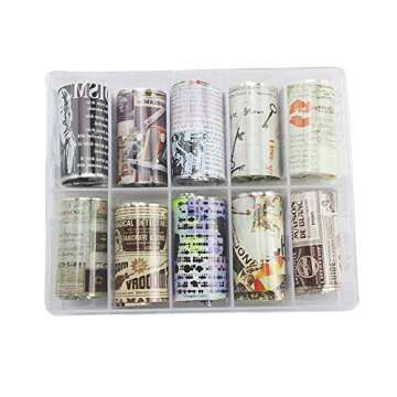 10pcs Nail Foil Set Old English Newspaper Letters Starry Sky Adhesive Wraps Transfer Paper Nail Art Decal (4x100CM/Roll)