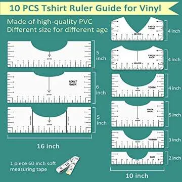 10PCS Tshirt Ruler Alignment Tool Set Tshirt Ruler Guide for Vinyl Tshirt Alignment Tool T Shirt Rulers to Center Designs Transparent T Ruler for Infant Toddler Youth Adult, Front and Back Measurement