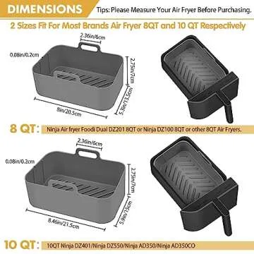 10QT Air Fryer Silicone Liners - 2Pcs Rectangular Airfryer Silicone Pot Baking Tray for Ninja Dual DZ401/DZ550 Reusable Replacement Basket Insert with Magnetic Cheat Sheet (2 Pcs Grey)