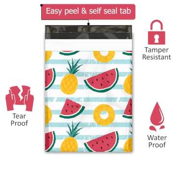 10x13 (100) Pineapple and Watermelon Designer Poly Mailers Waterproof Self Sealing Tear Resistant Polymailers Shipping Envelopes Premium Printed Bags For Small Businesses