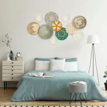 11 Pcs Boho Wall Basket Decor - Decorative Bulrush Woven Baskets for Home