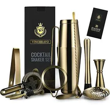 Show moreTransform your cocktail crafting experience with the VinoBravo 11-Piece Bartender Kit. This all-inclusive set is designed for both aspiring mixologists and seasoned professionals who appreciate the art of cocktail making. The kit features not just one, but two weighted shaker tins (18oz and 28oz) to accommodate a variety of drink recipes. Each piece in this premium collection is crafted with attention to detail, from the five types of strainers including the Julep, Hawthorne, and Fine Mesh, to the precision Japanese Jigger that ensures perfect measurements every time. Whether you're shaking or stirring, you'll find the sleek European style Bar Spoon with a spiral handle to be the ideal companion. Plus, with two liquid pourers, an Ice Muddler, tongs, and a handy Recipe Guide for 30 classic cocktails, this set truly covers all your bartending needs!